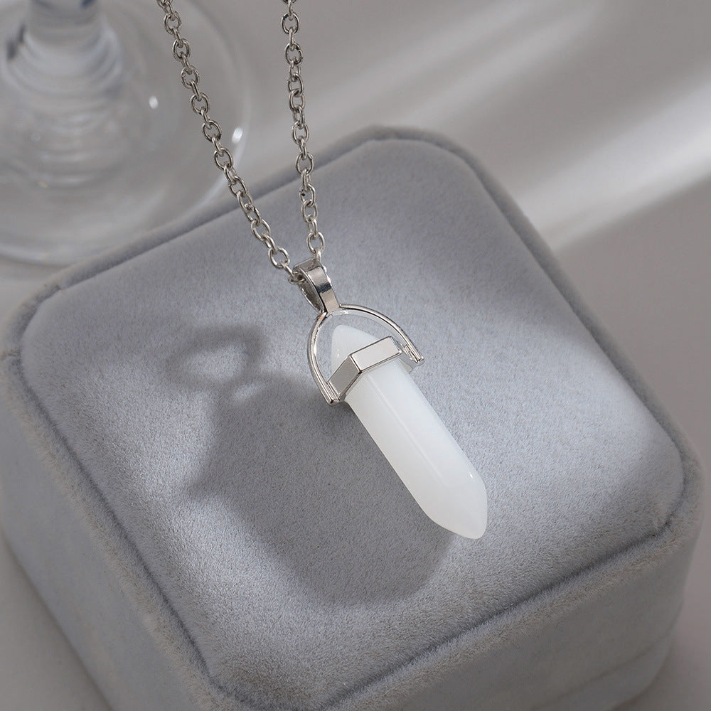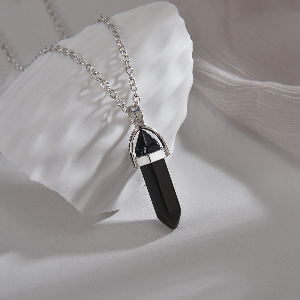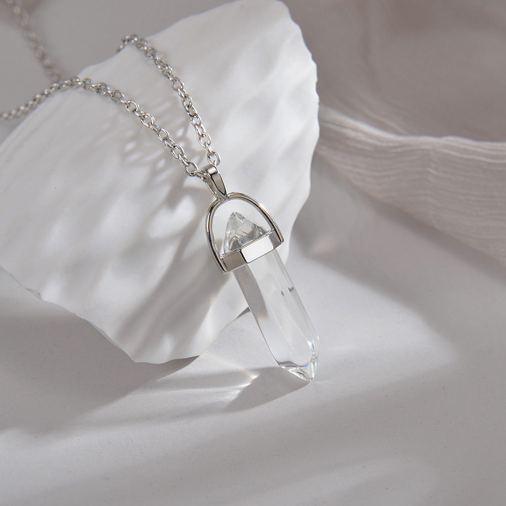 A clear shape. A calm presence. Spire draws the eye with geometric balance, its tapered crystal creating a clean centre line that steadies your style without noise.