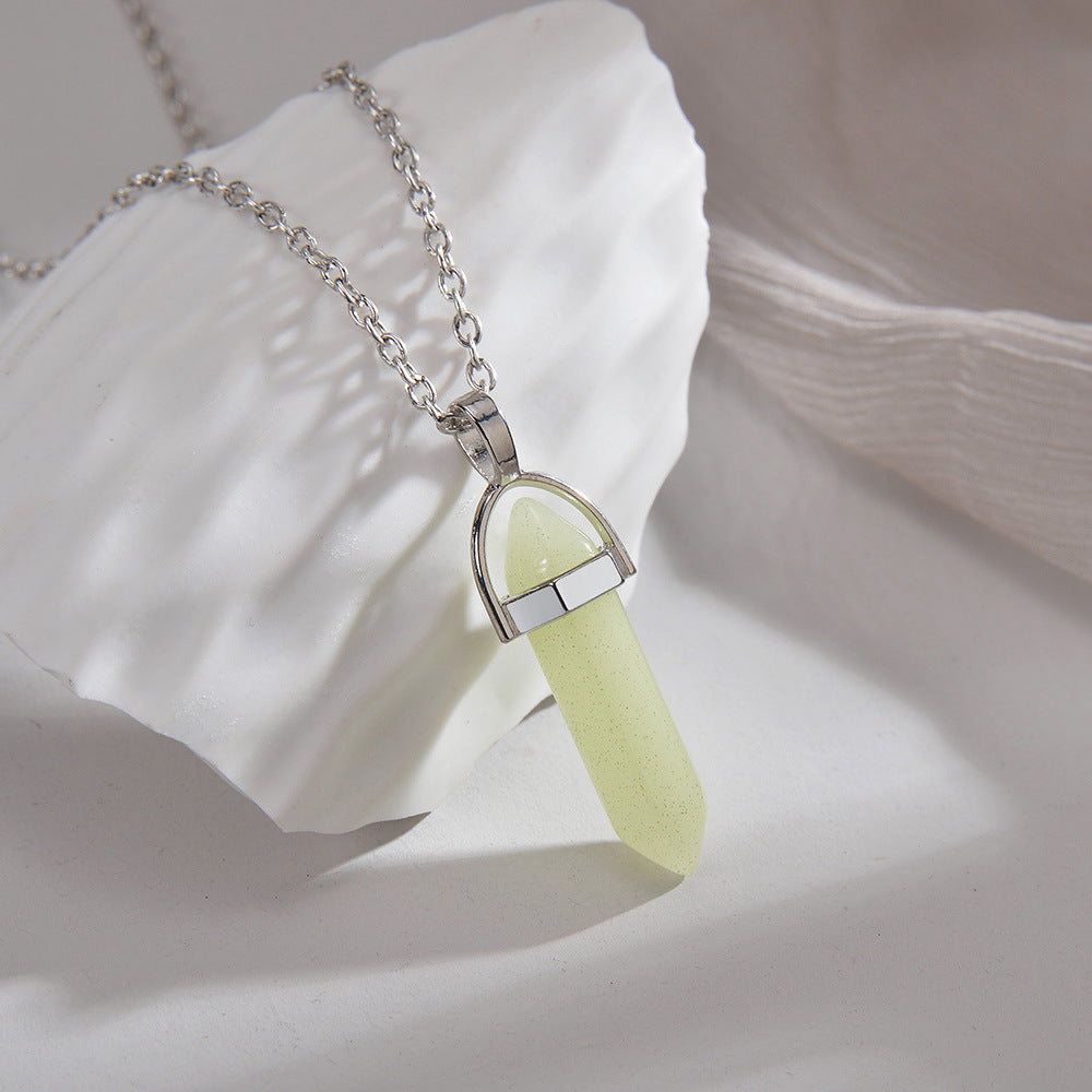 Polished metal frames the form. The stone catches light and moves with you, adding subtle clarity in daylight. Select colourways include a soft after-dark glow for low-light presence.